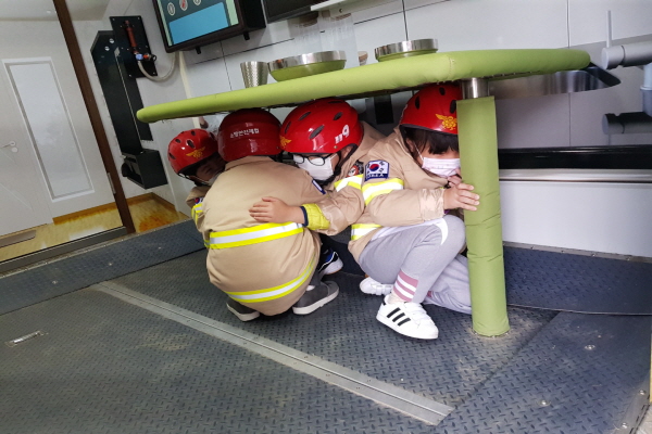 지진 등 재난대응 체험, 화재대피 농연 탈출체험, 사고예방 교육 소방동요 영상 교육, 구급차·소방펌프차 체험을 했다.