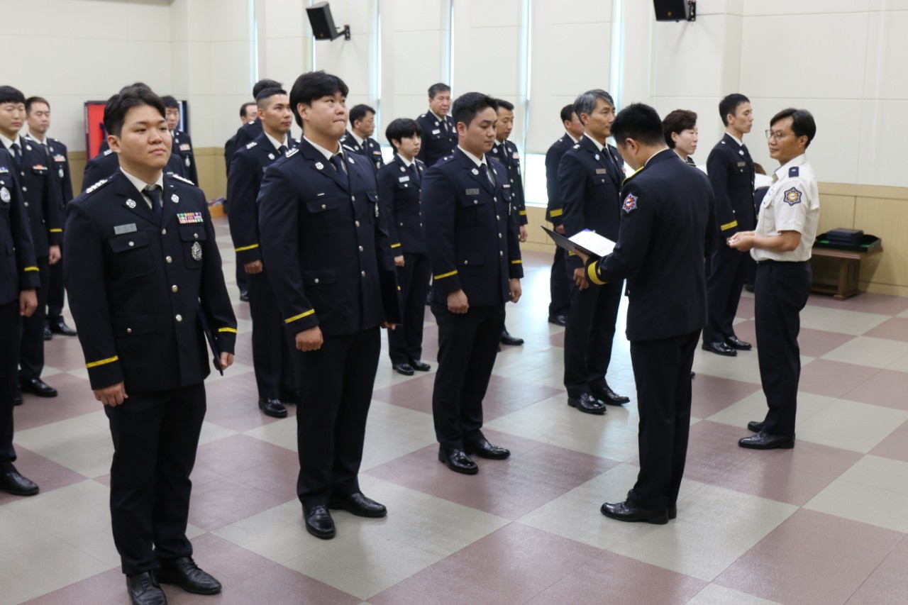 □ 고성소방서는 7월 7일 오전 본서 대회의실에서 정기 인사발령에 따른 임용장 수여식을 개최했다.