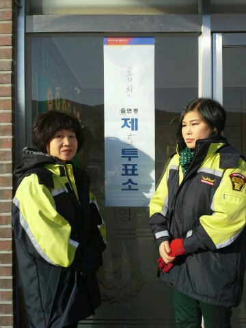 홍천여성대는 18대 대통령선거관련 투표소긴급발생상황시 신속한 현장대응 을 위해 각 투표소에 2인1조로 배치되어 활동했읍니다.