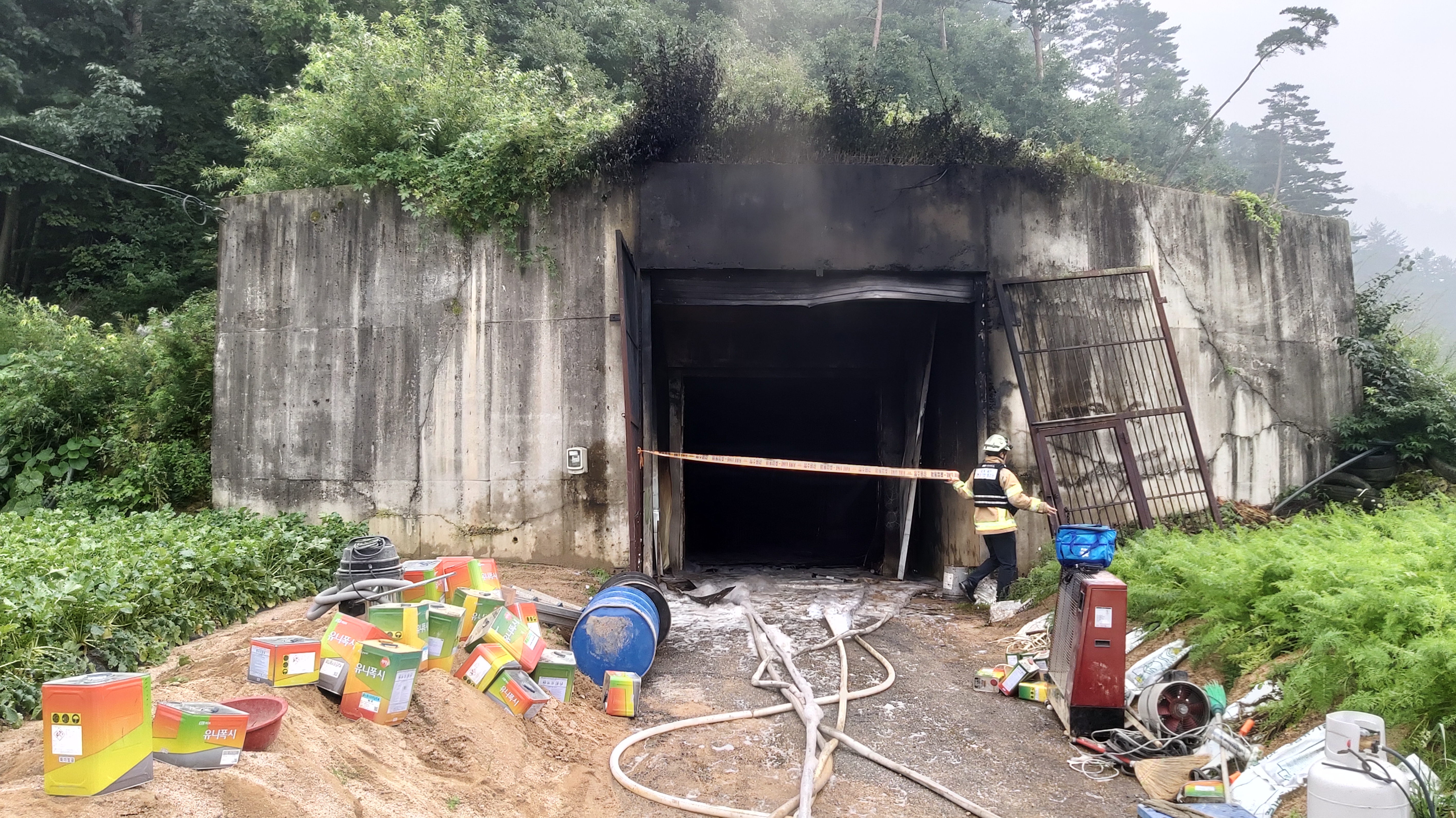 - 작업 중 화재발생하여 콘크리트 감자저장창고 45평 전소