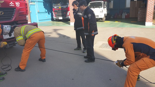 각종 재난재해시 신속한 인명구조를 위해 장비조작 훈련을 실시하고 있습니다.