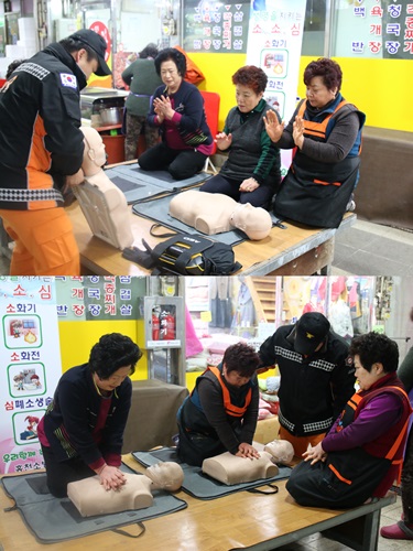 또한 시장내에 있는 기초소방시설(옥내소화전, 소화기)의 사용방법에 대한 교육을 통해, 상인들이 평소 주변에 설치되어 있는 기초소방시설 관리에 대한 책임성을 강화하여 안전관리 역량을 강화하도록 자율소방체계 확립하고자 매월 4일 정기적으로 교육을 실시할 예정이다