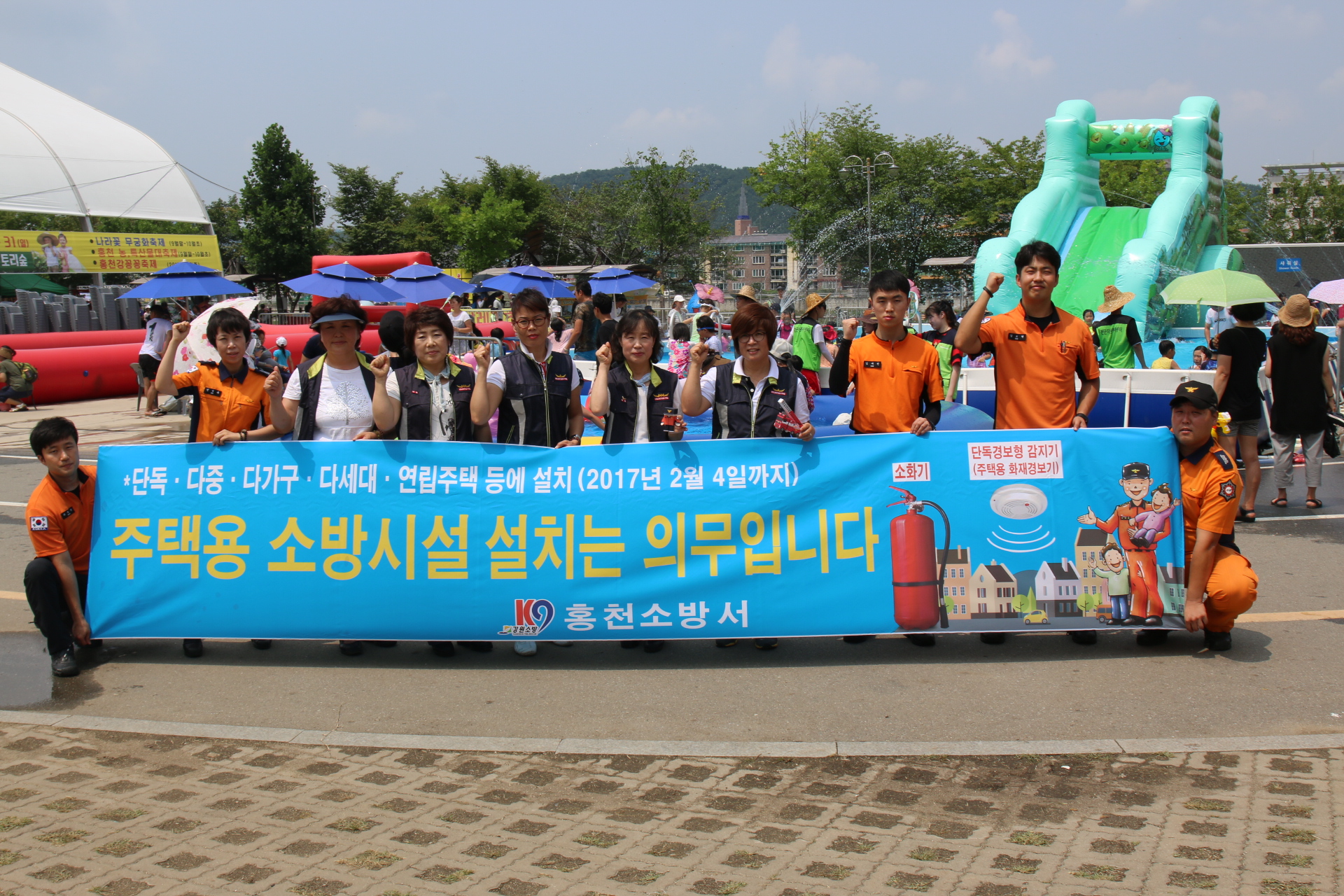 ▶ 주택용 소방시설 설치 홍보부스를 통해 주택용 소방시설 설치 필요성을 적극 안내하였으며, 함께한 홍천읍 여성의용소방대원들과 함께 "주택용 소방시설 설치 홍보 캠페인"을 실시하였다.