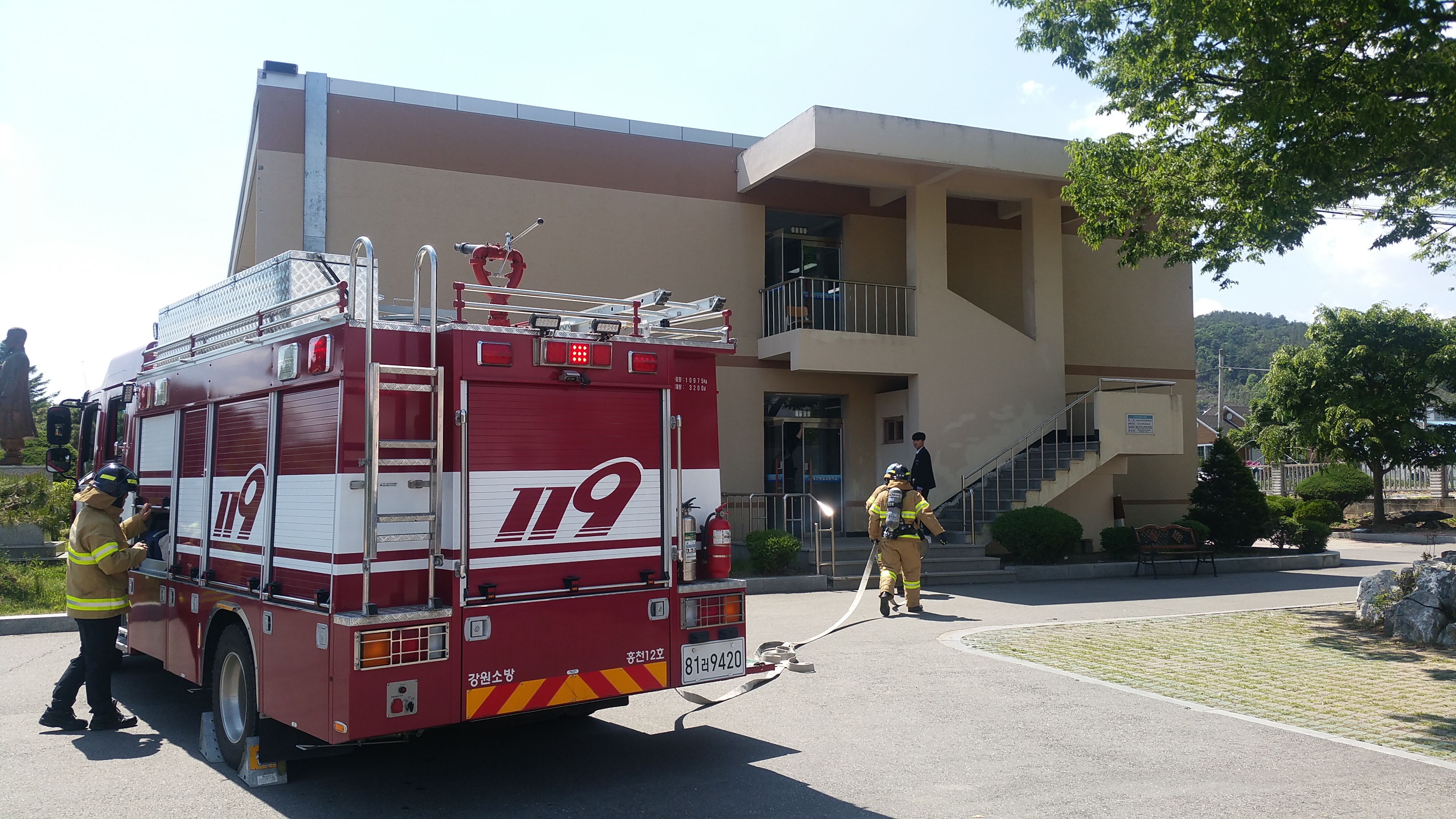 홍천소방서(서장 이종진)는 17일(수) 오후 홍천농업고등학교에서 학생, 교직원 100여 명과 함께 화재발생 시 신속한 피난대피훈련과 초기 화재진압활동 등을 내용으로 하는 공공기관 합동 소방훈련을 실시했다.