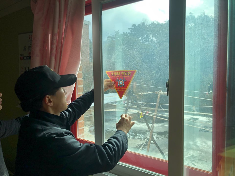 화재시 신속한 진압활동을 위하여 피난약자시설 진입창 표시