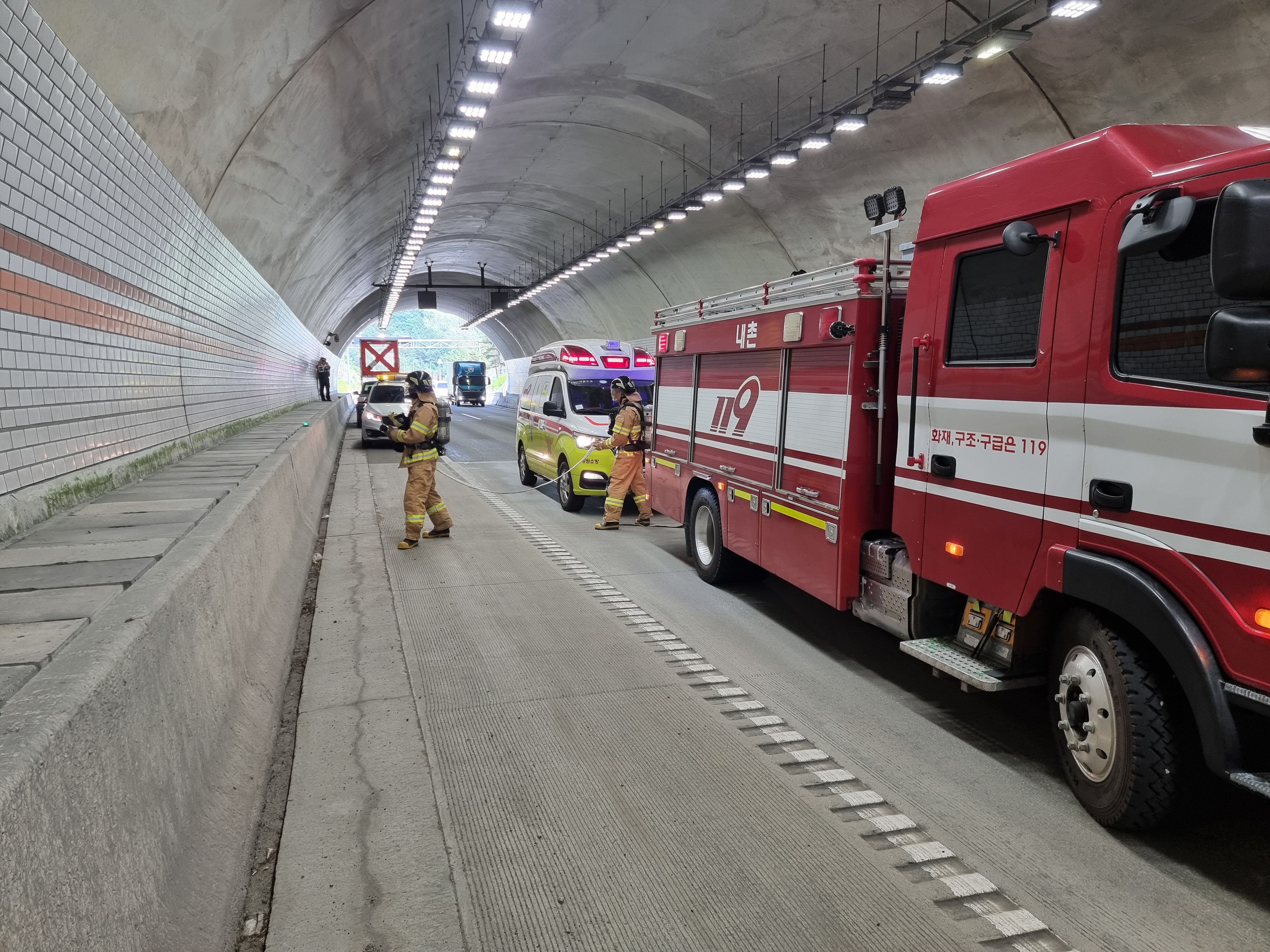 홍천소방서(서장 김숙자)는 13일, 내촌1터널에서 터널 내 화재 및 재난 상황 대응 능력을 강화하기 위해 유관기관과 장대터널 합동소방훈련을 실시했다고 밝혔다.
