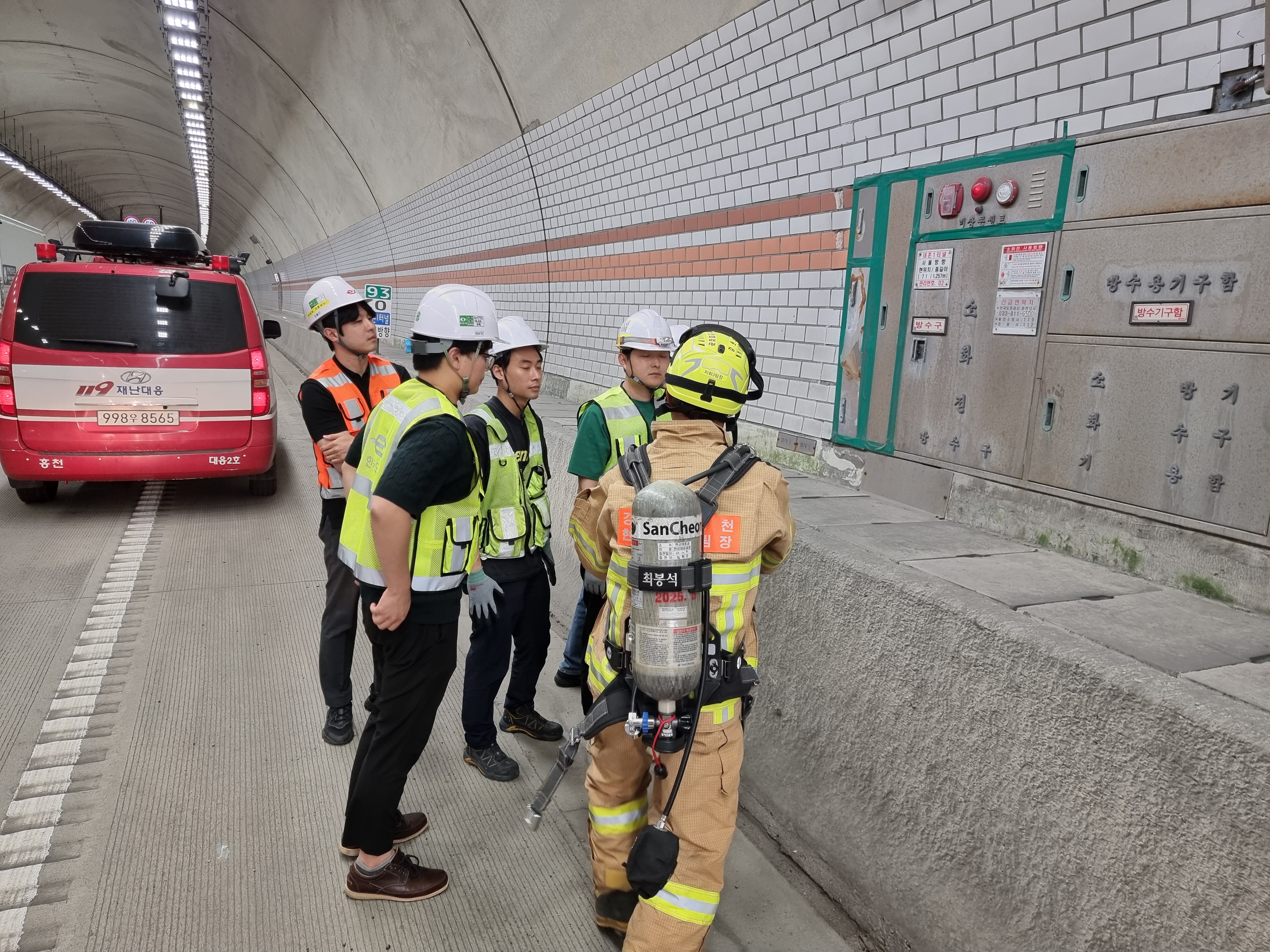 세부 훈련 내용으로는 터널 내 소방 및 피난시설을 철저히 점검하고, 관리소의 소방장비 운용 방법 교육 및 화재 진압 활동 시 발생할 수 있는 장애 요인과 그에 대한 대응 전략을 모색했다.