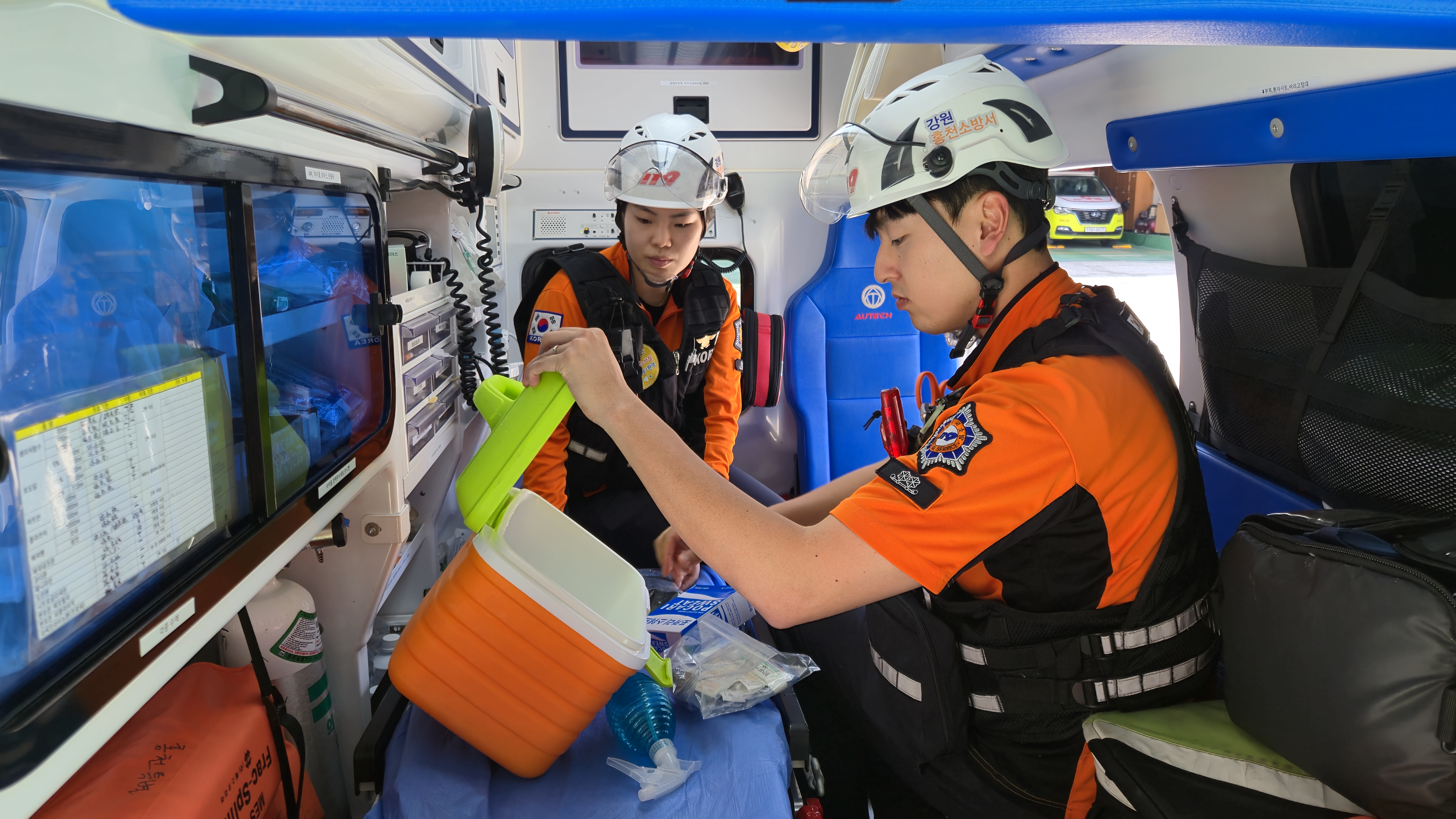 폭염 특보가 발령되면 관내 11대 119구급차에 얼음팩, 전해질 음료, 물스프레이 등 폭염 대응 장비를 구비해 신속한 현장 응급처치에 나서고 있다.
