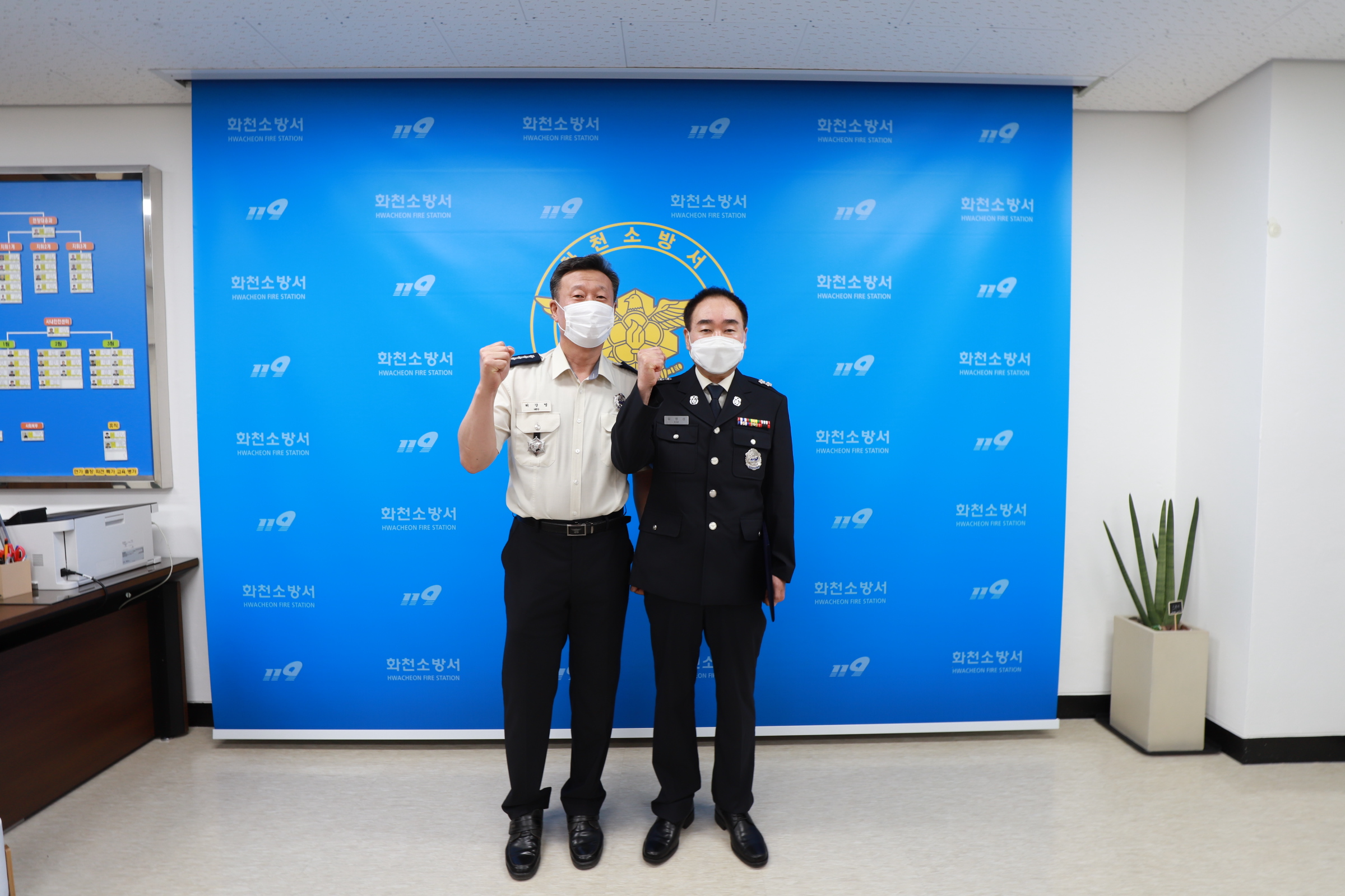 화천소방서는 김영신 소방위(소방경 근속승진)에 대한 승진 임용 신고식을 진행하였습니다.
