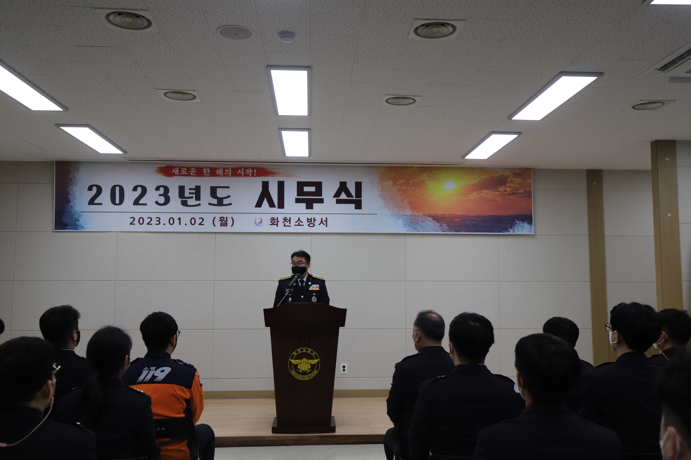 2023년 1월 2일 09시 30분 화천소방서 대회의실에서 시무식을 시행했습니다.