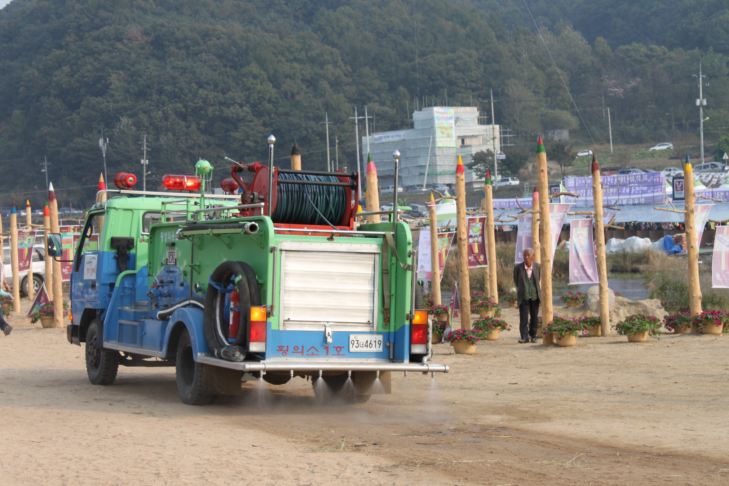 건조한 지면에 살수하는 센스도 발휘하였습니다.