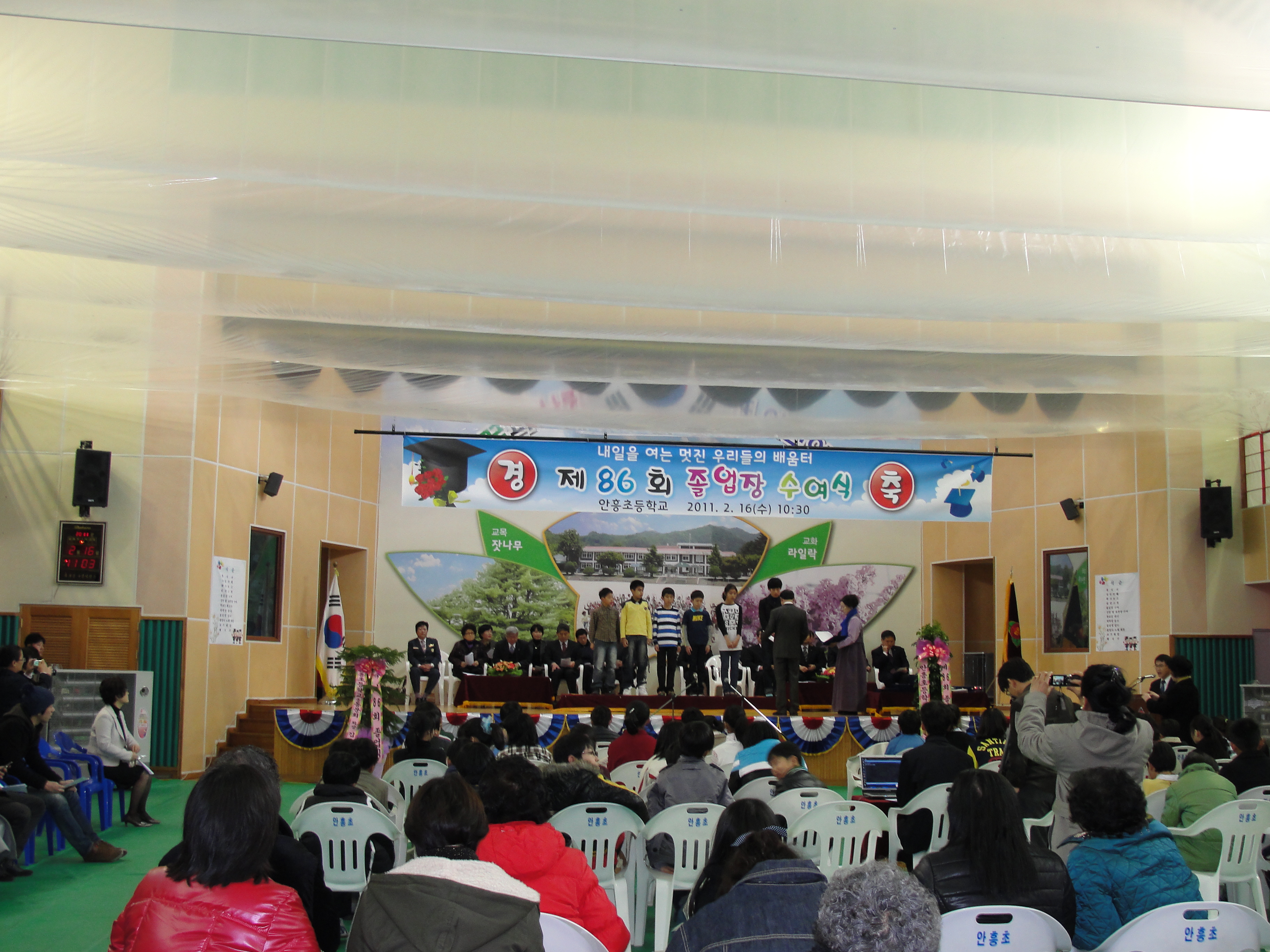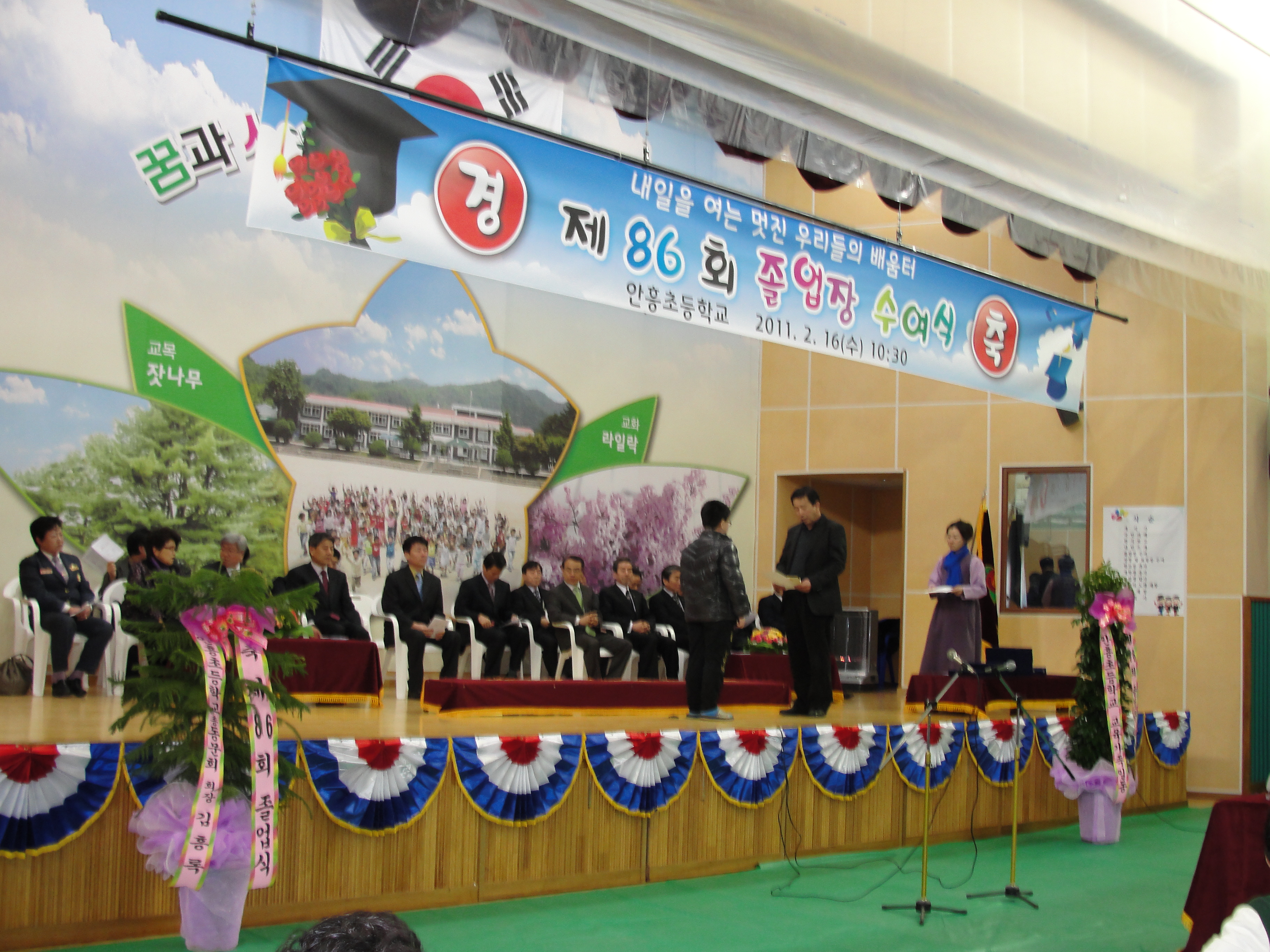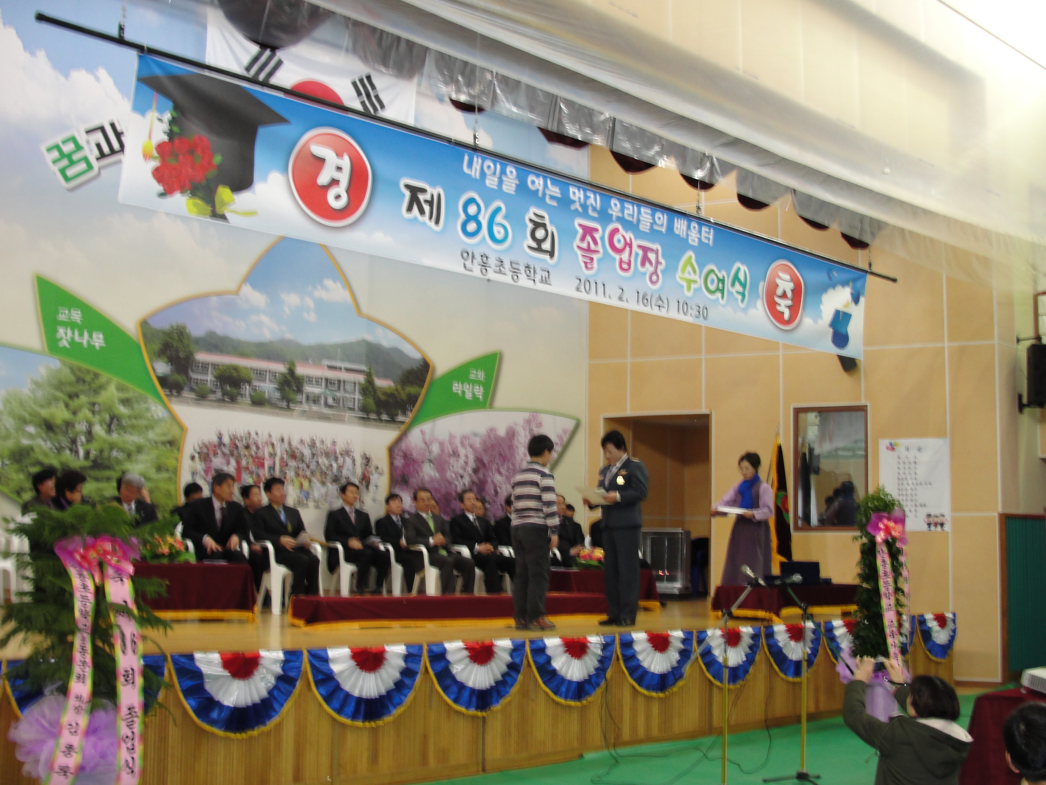 남성대 최돈영대장과 여성대 김정자대장은 안흥초교 졸업식에 참석,