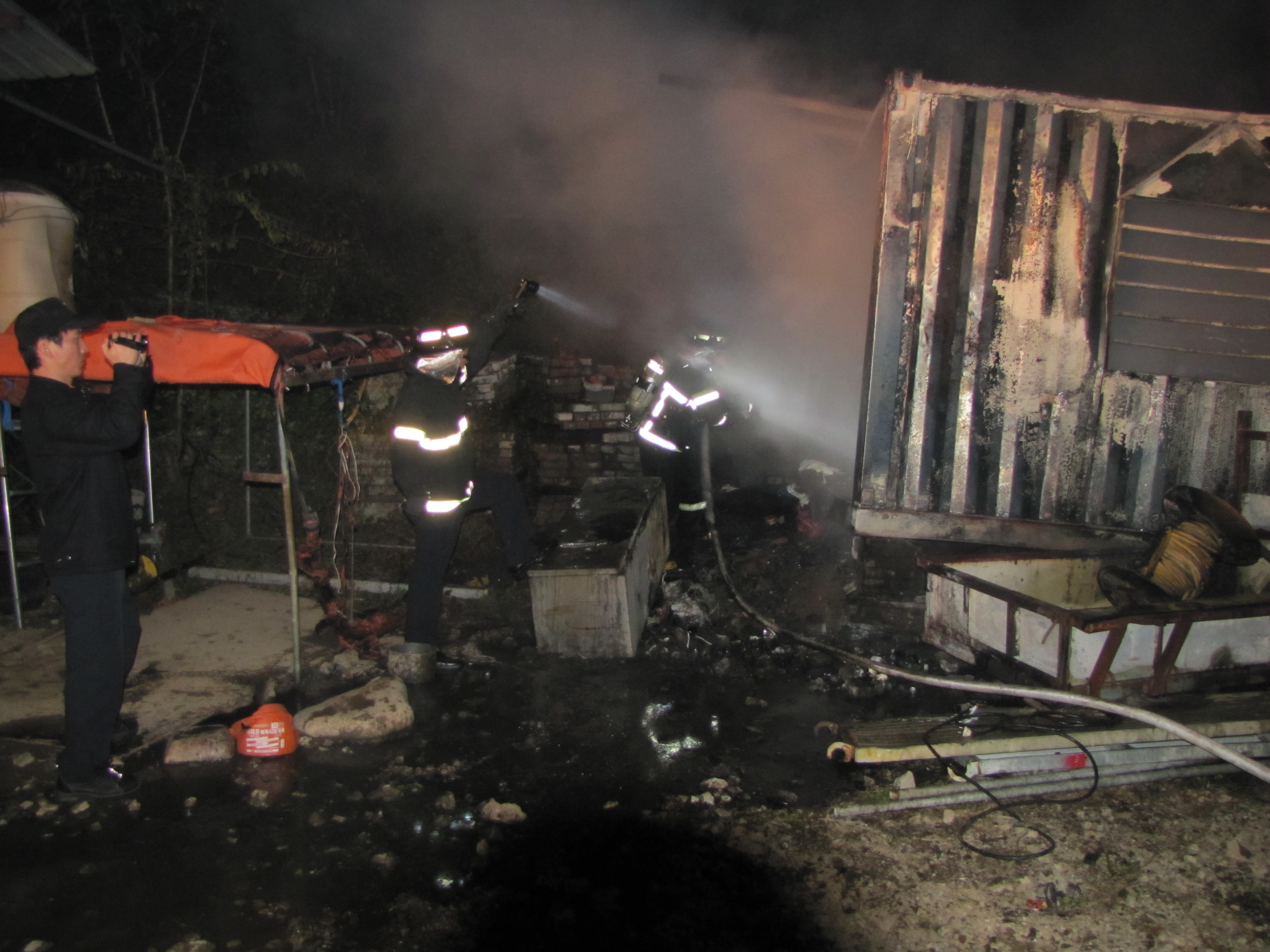 컨테이너 화재 진압 25분 화재지압