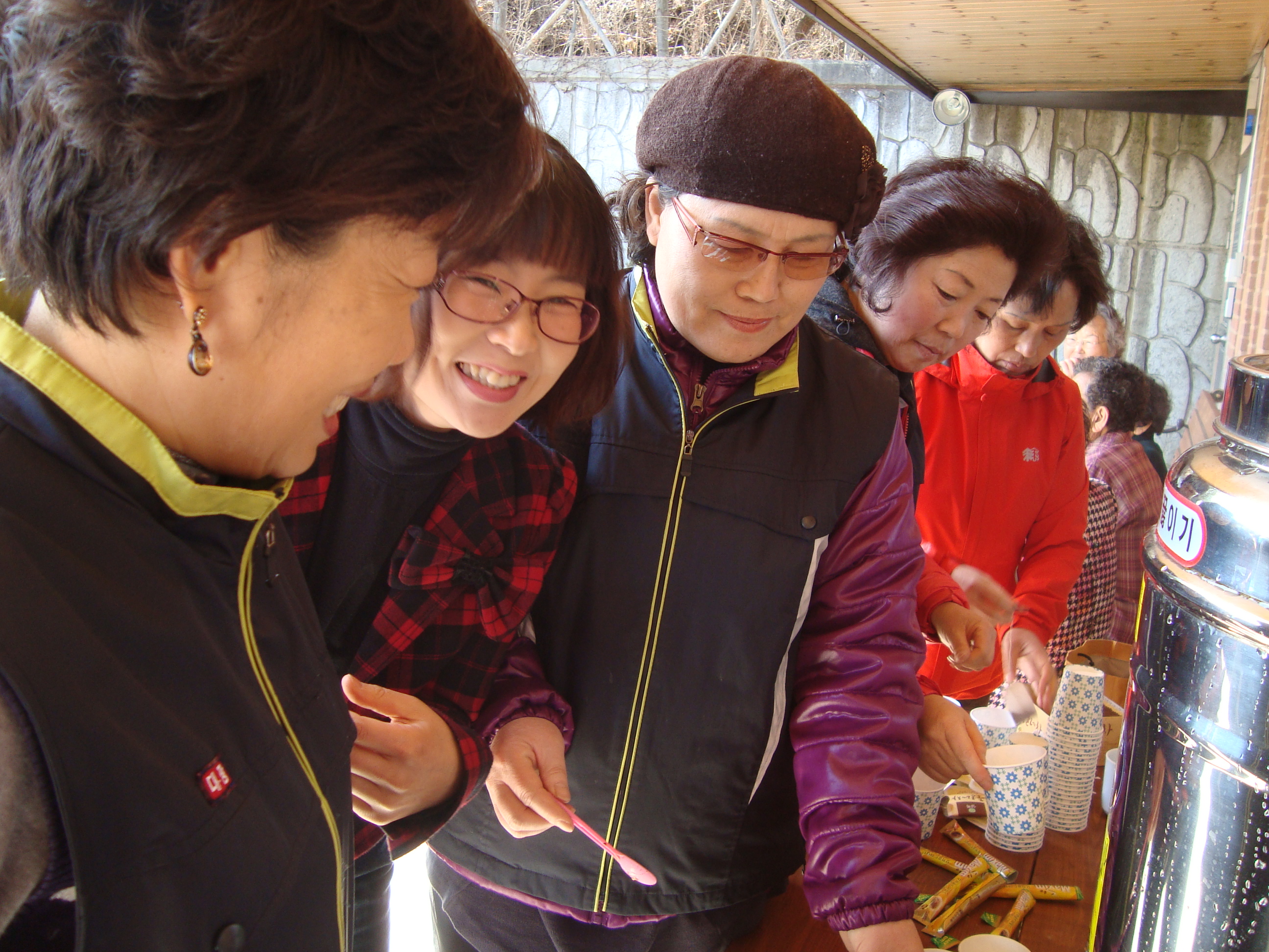 어르신들께 따스한 차를 봉사하며...