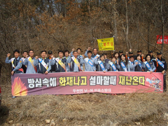 우천 여성대 남성대가 같이 산불 조심 캠페인을 2013년 3월30일 토요일 우천면 용둔리에서 펼쳤습니다