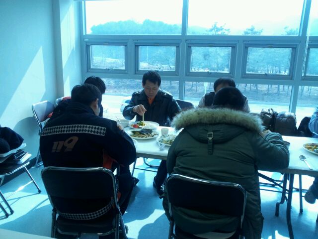 대장님과 임원들이 음식을 하나씩 준비해서 센터 직원 및 대원들과 맛있는 점심 식사를