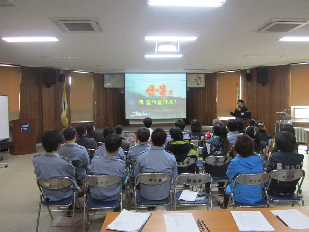횡성읍사무소 대회의실에서 산림청 소속 강사의 산불예방 교육이 있었습니다.
