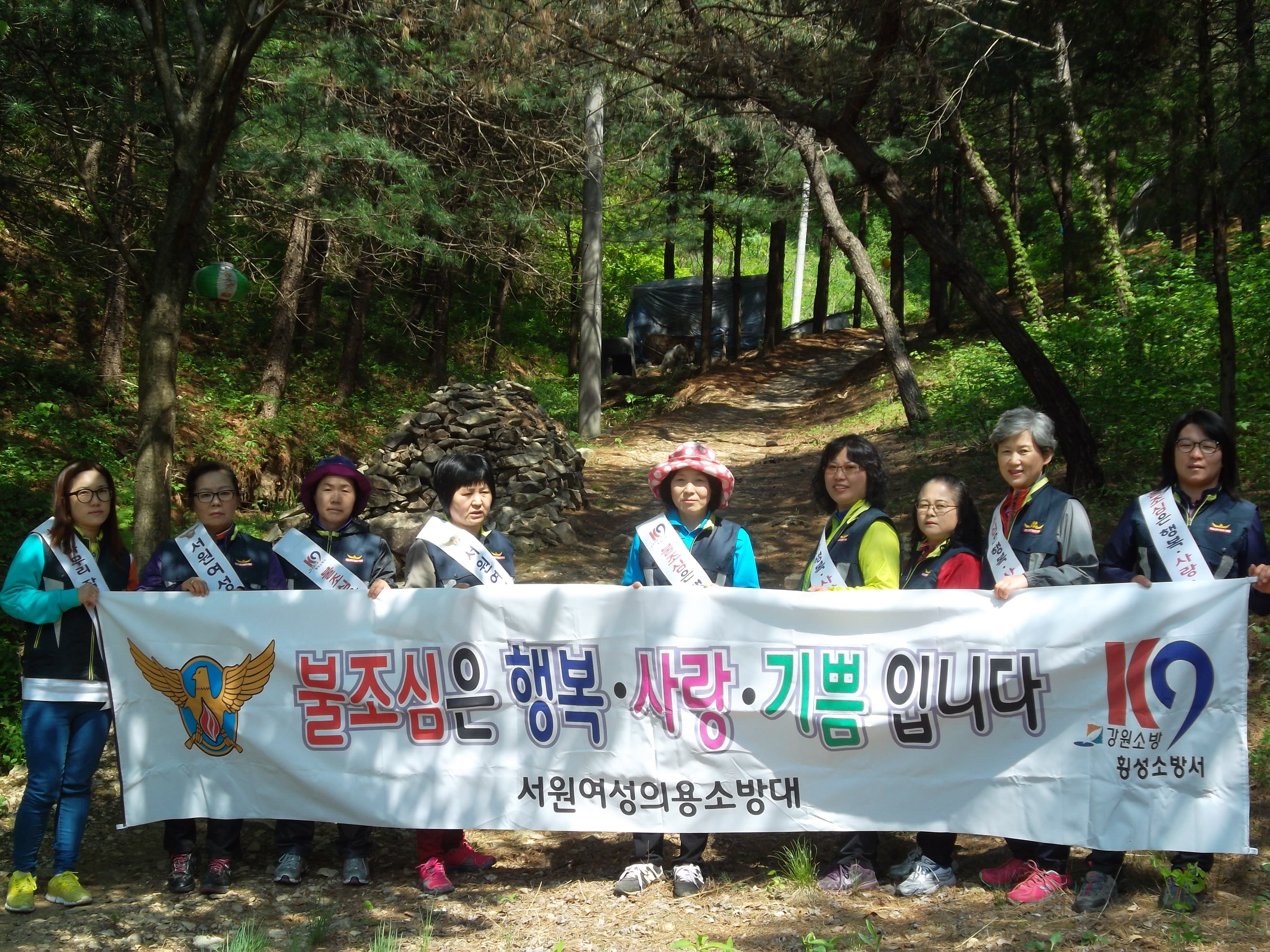 서원여성대(대장 윤은숙)외15명은 5월6일 약수사 금불산 성지봉에서 산불조심 켐페인 실시함