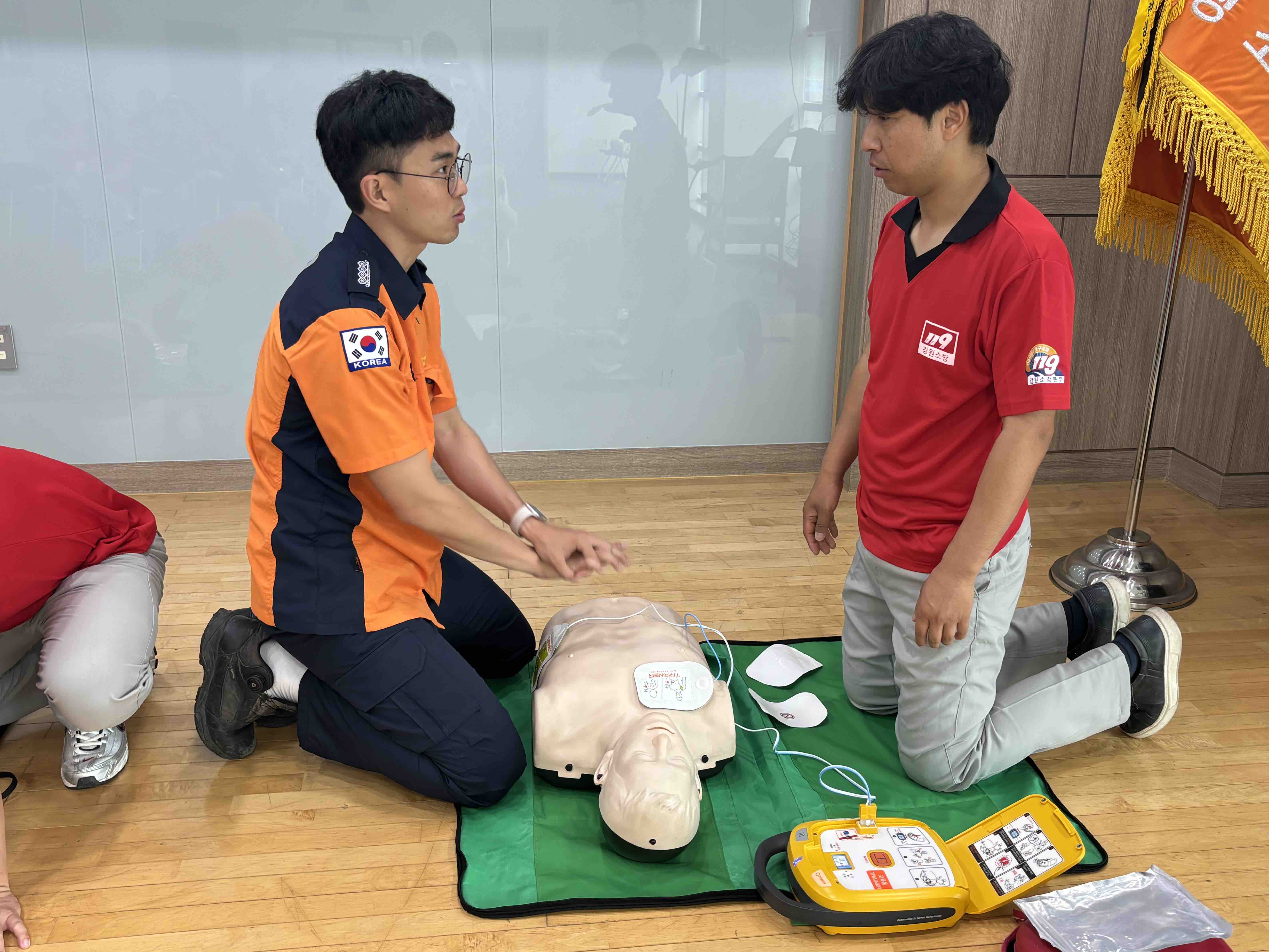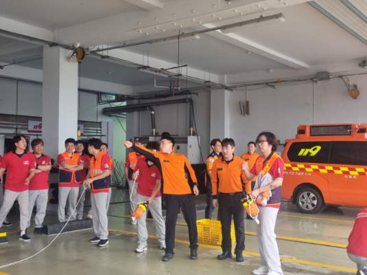 발대식 후 심폐소생술 및 드로우 백, 구명환 던지기 실습을 하는 시간을 가졌습니다.