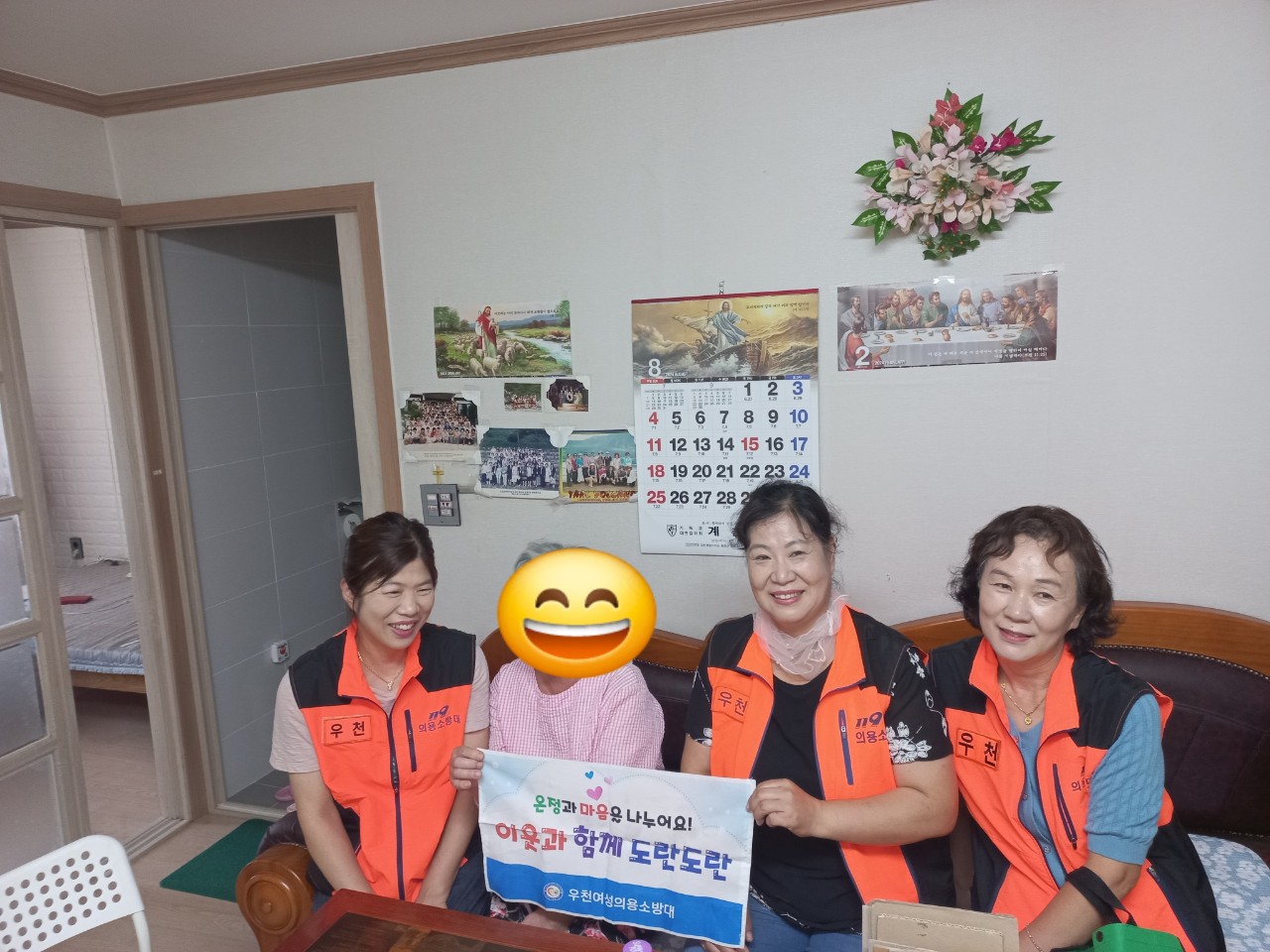 8월 9일 9시부터 우천여성의용소방대원들은 두 가정을 방문하여 이야기 꽃도 피우고 물품도 잘 전달하였습니다.