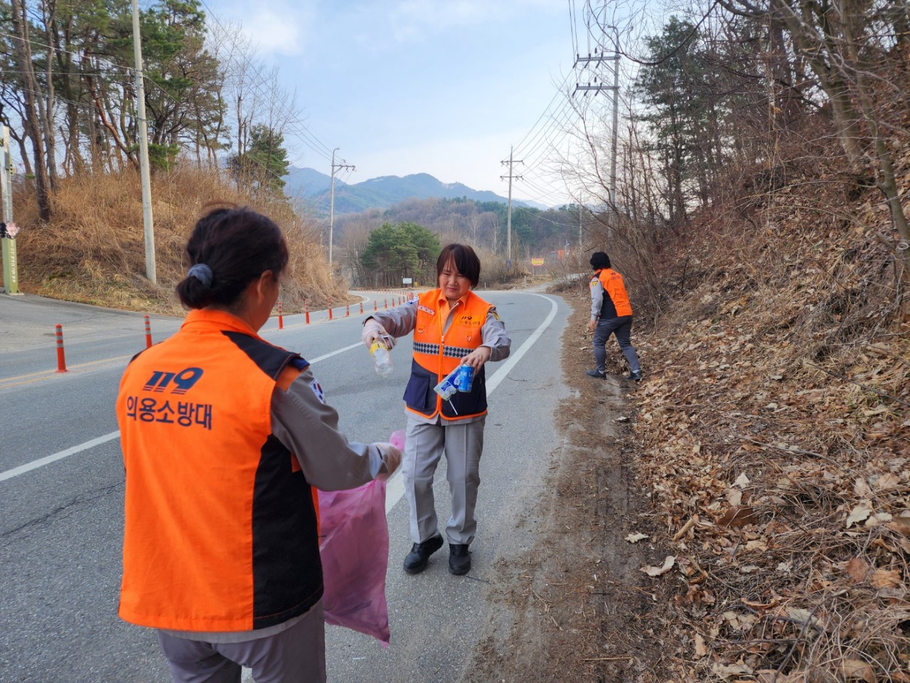 3월 24일 우천여성의용소방대는 우천면 새말탑 일대에서 환경정화활동을 실시하였습니다.