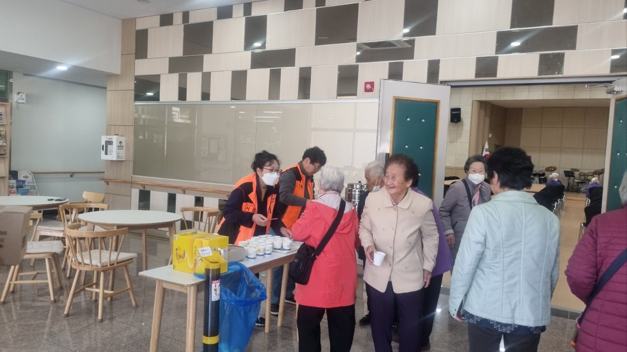 이날 대원들은 은빛대학 프로그램에 참여한 어르신 한 분 한 분께 따뜻한 차와 함께 다정한 인사를 건넸습니다.