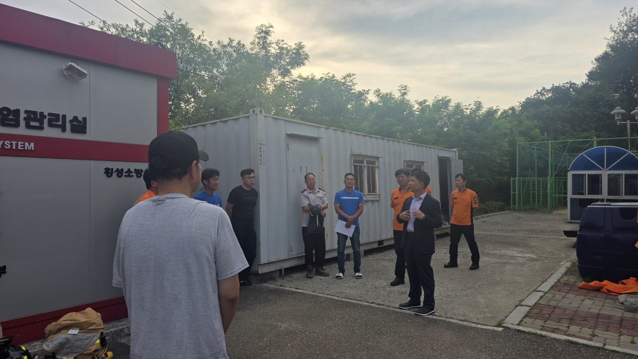 횡성소방서 우천남성의용소방대는 제38회 전국의용소방대 소방기술경연대회 참가를 앞두고, 호스 전개 및 회수 종목 시연회를 개최하며 대회 준비에 박차를 가했습니다.