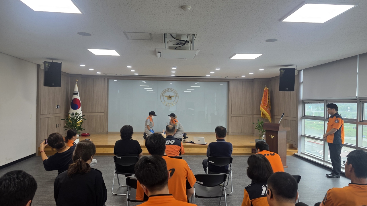 이번 시연회에서는 ▷심폐소생술 시연(횡성여성의용소방대), ▷4인조법 시연(공근남성의용소방대), ▷호스전개 및 회수 시연(횡성여성의용소방대) 등