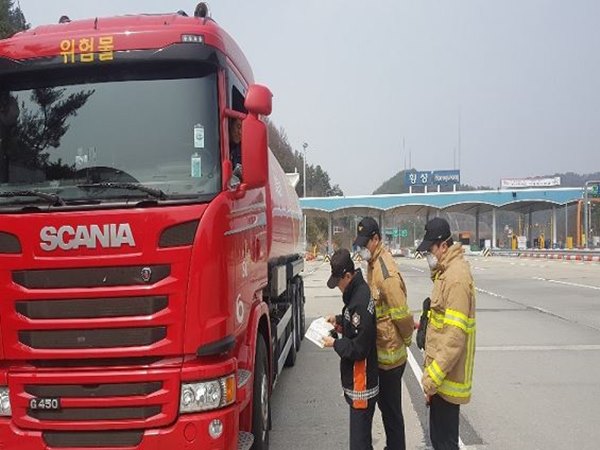횡성소방서, 위험물 운송·운반차량 불시 가두검사 실시