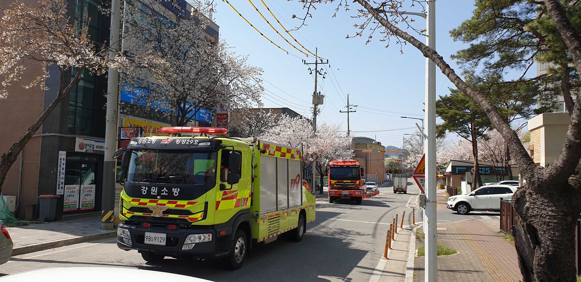 횡성소방서는 금일 오후 각종 사고 등 현장 출동 시 골든타임 확보를 위해 소방차 길 터주기 훈련을 실시했습니다.