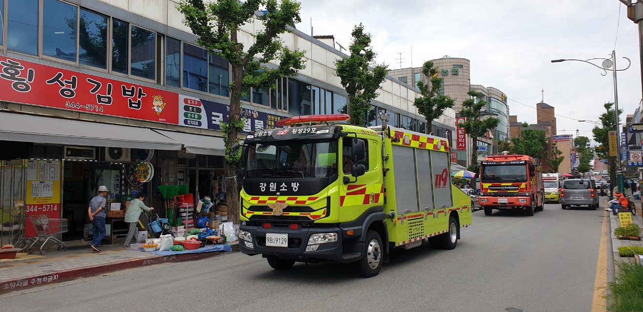 금일 보다 안전한 횡성군을 위해 유관기관 합동 소방차 길 터주기 훈련을 실시했습니다.