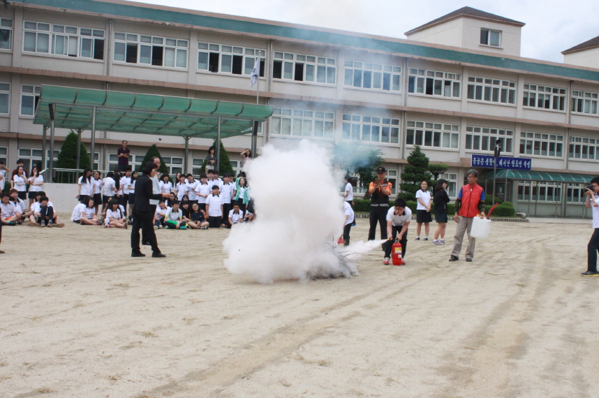 오늘 훈련은 ▲화재발생 시 119신고요령 및 대피요령 ▲소소심 익히기 체험 ▲119신고 확대서비스 및 긴급차량 길터주기 안내 등으로 진행되었다.