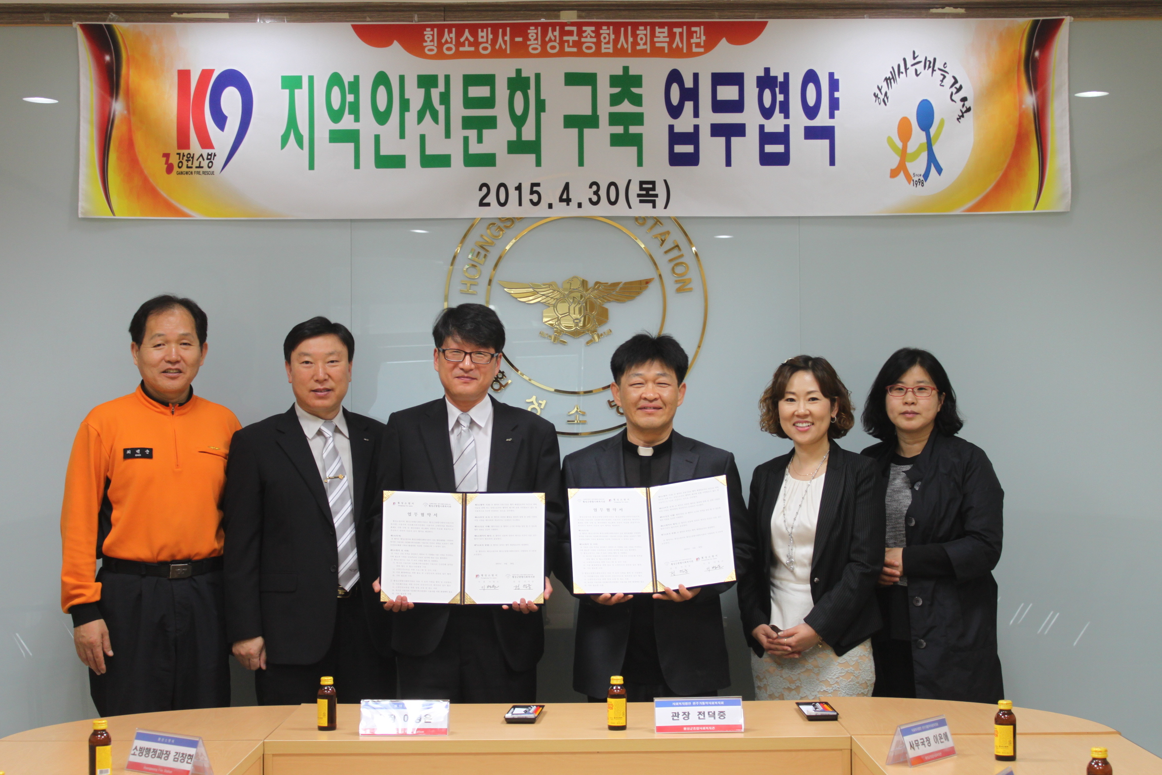 횡성소방서(서장 이병은)와 횡성군종합사회복지관(관장 전덕중)는 30일 10시 소방서 소회의실에서 지역안전문화 구축을 위한 업무협약을 체결하였다.