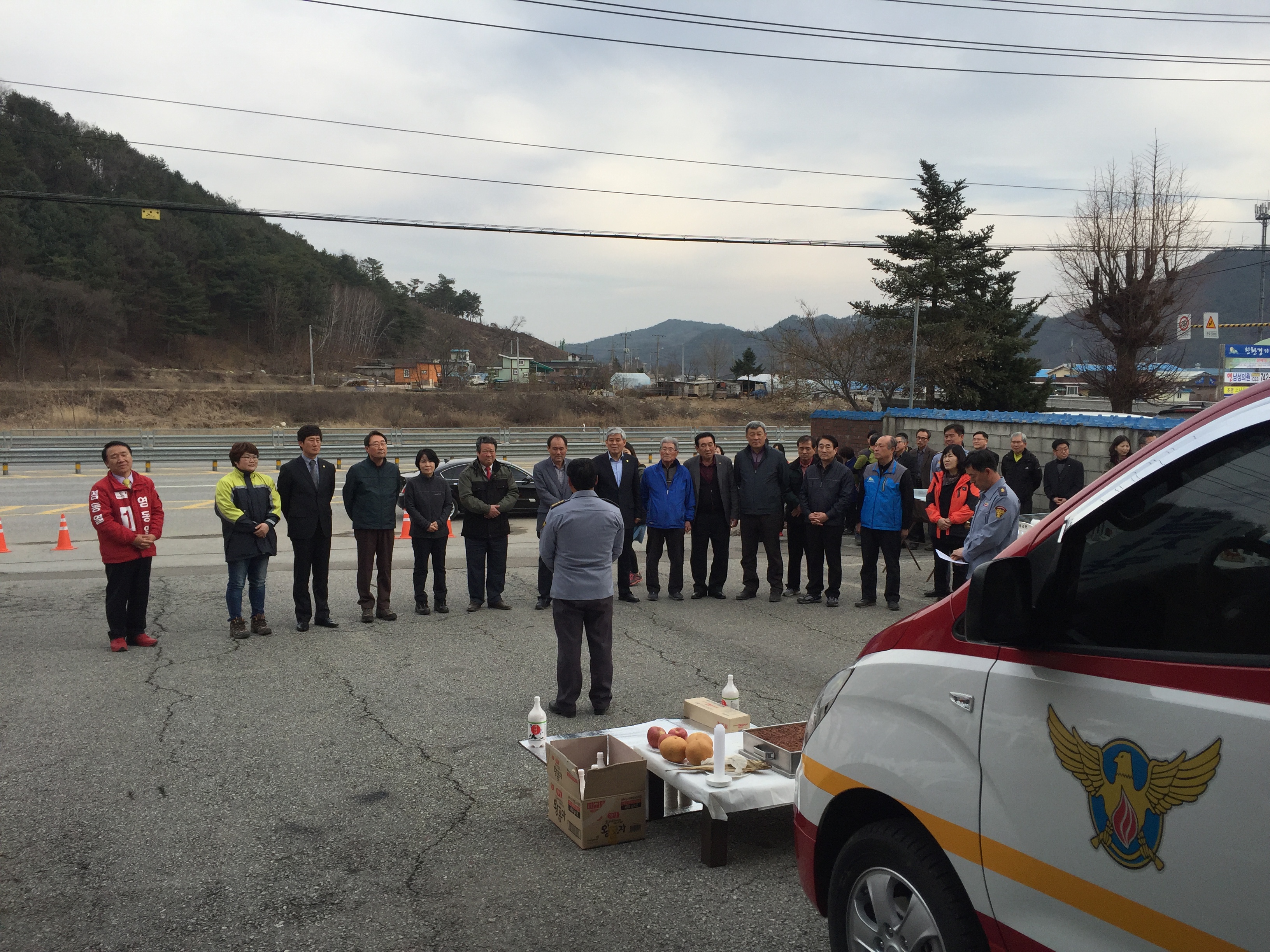2016. 03. 17(목) 공근 의용소방대(남성대장 경규훈) 신규출고된 순찰차량에 대한 안전기원제가 횡성소방서장, 횡성군수, 도의원 각 급 기관장 등 내빈과 공근 남여 의용소방대가 참여한 가운데 실시되었습니다.