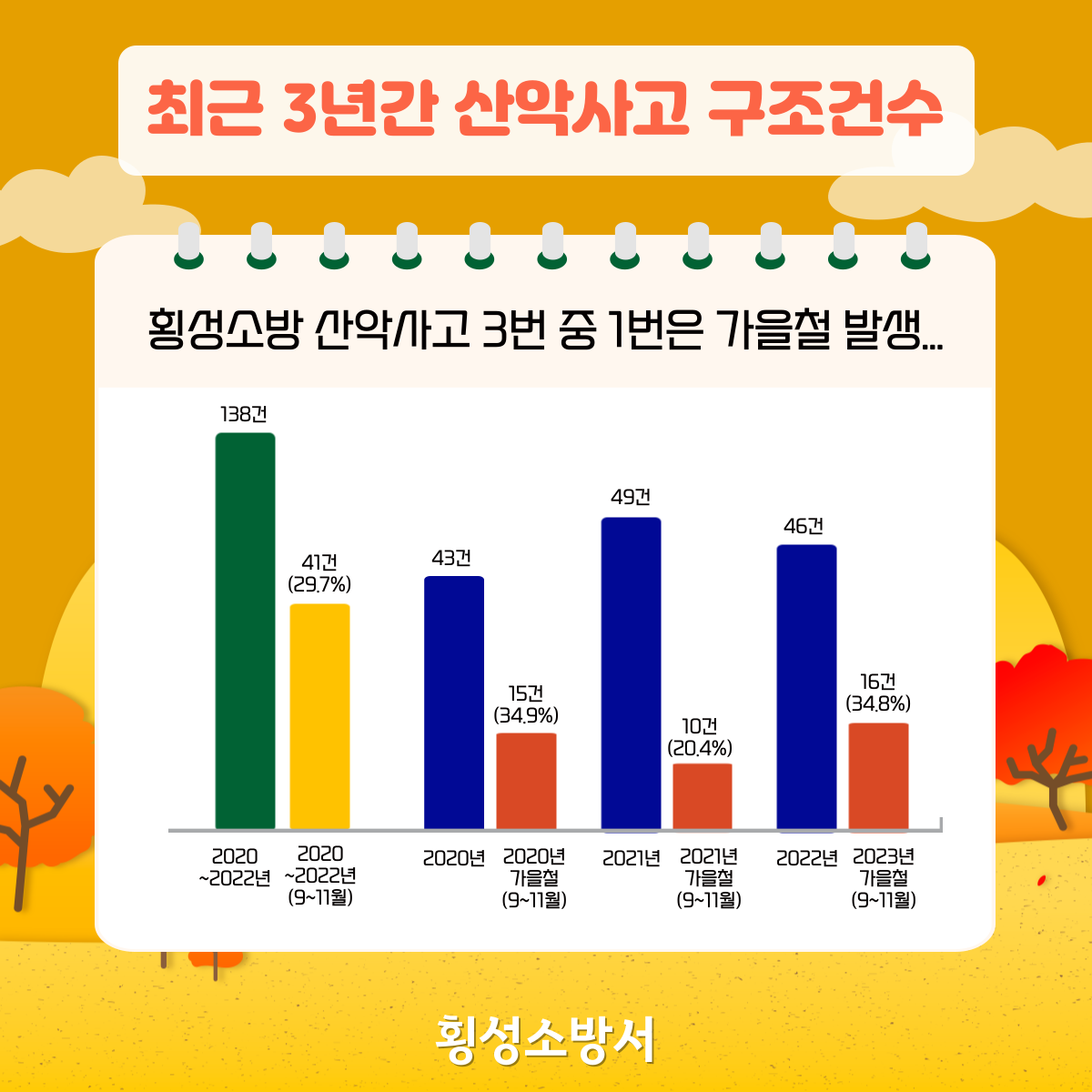 횡성소방 산악사고의 3건중 1건은 가을철에 발생하고 있습니다!