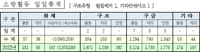 ○ 구조 2건(벌집제거 1,기타안전사고 1)