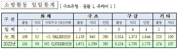 ○ 구조 2건(동물 1, 유케어 1)