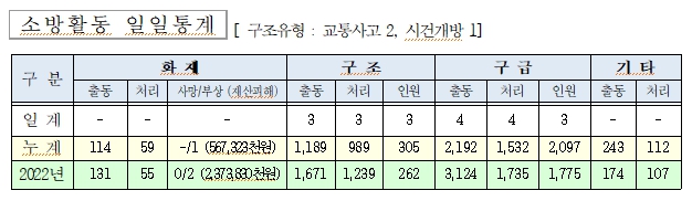 ○ 구조 3건(교통사고2, 시건개방1)
