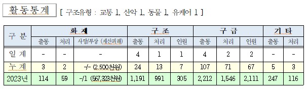 ○ 구조 4건(교통 1, 산악 1, 동물 1, 유케어 1)