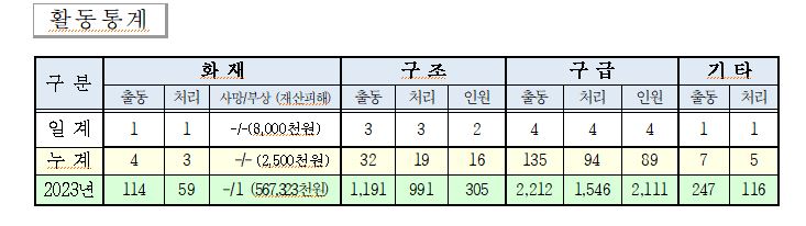 1. 29.(월) 소방활동 상황일보
