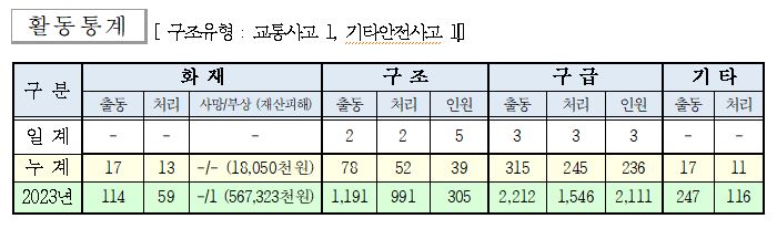 ○ 구조 2건(교통사고 1, 기타안전사고 1)
