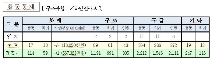○ 구조 2건(기타안전사고 2)