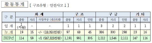 ○ 구조 1건(안전사고)
