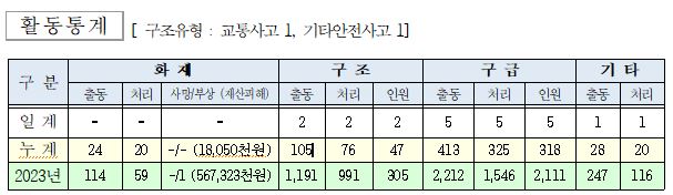 ○ 구조 2건(교통사고 1, 기타안전사고 1)