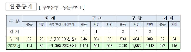 ○ 구조 1건(동물구조 1)