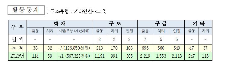 ○ 구조 2건(기타안전사고 2)