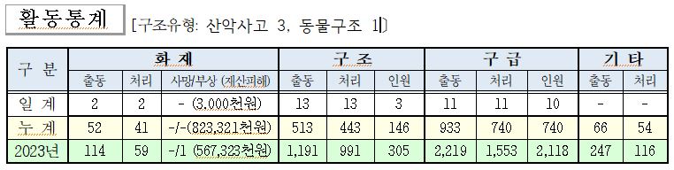 ○ 구조 4건(산악사고 3, 동물구조 1)