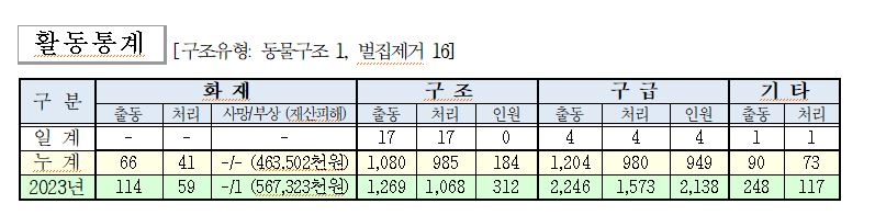 ○ 구조 17건(동물구조 1,벌집제거 16)