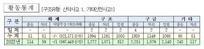 ○ 구조 2건(산악사고 1, 기타안전사고1)