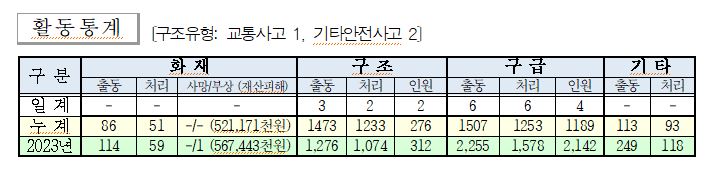 ○ 구조 3건(기타안전사고 2, 교통사고 1)